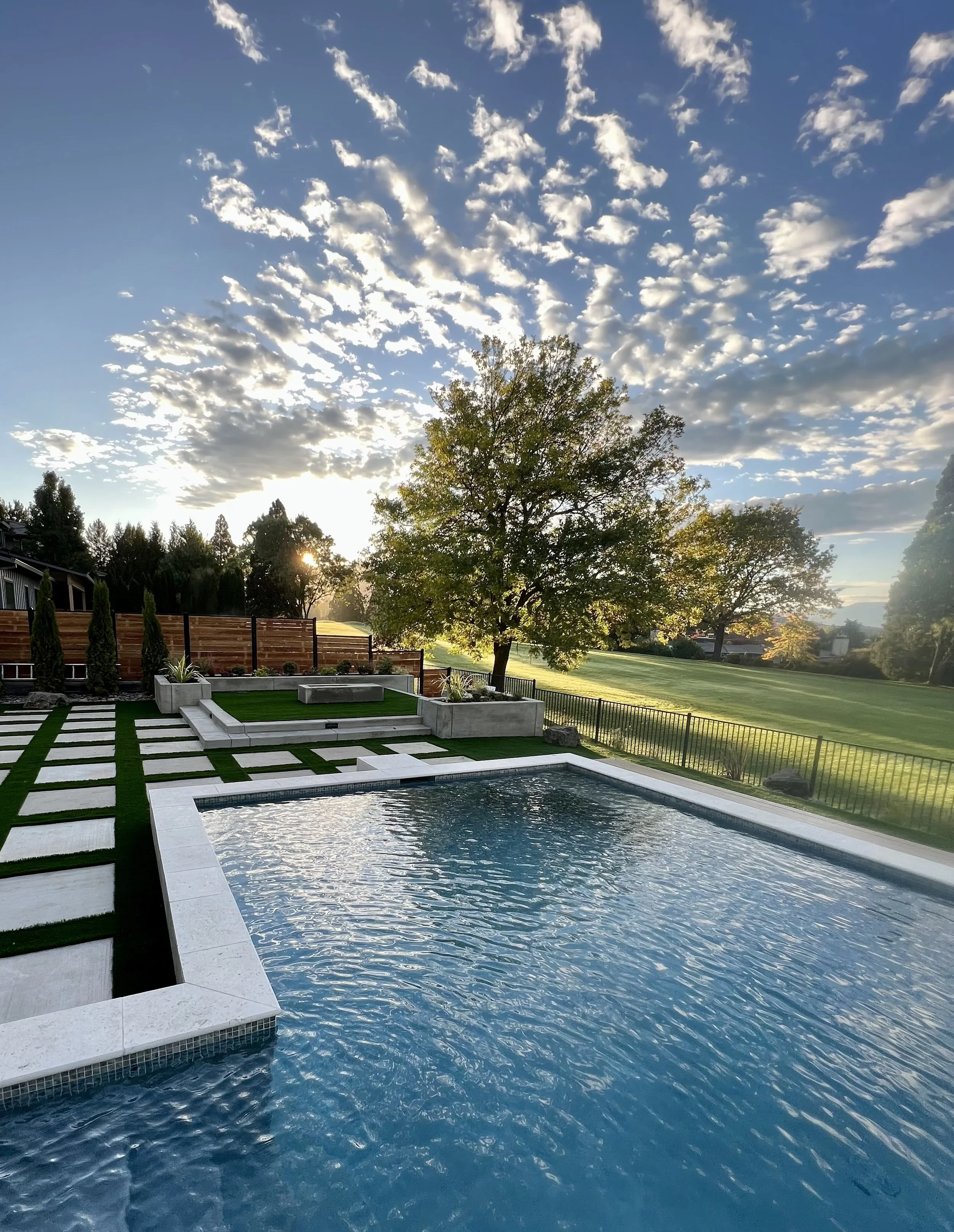 A custom putting green was integrated into the backyard to provide a playful and functional recreational element while maintaining the clean aesthetic of the landscape.